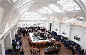 Phòng thiết kế rộng lớn, nơi hàng chục kỹ sư năm xưa từng miệt mài vẽ nên dung mạo của tàu Titanic, nay được chuyển đổi thành phòng tiệc và quầy bar.