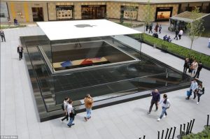 Mô hình cửa hàng mới của Apple này chỉ gồm 5 thành phần: 4 tấm kính và 1 tấm nắp kim loại. Chất kết dính duy nhất của chúng là silicon. Các giám khảo nhận định “chỉ kĩ thuật tuyệt vời và sự lưu tâm đến từng chi tiết mới có thể tạo ra một sản phẩm đơn giản và thuần khiết như vậy”. Ảnh: Gary Allen