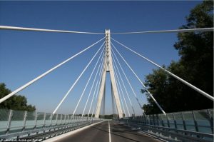 Chiếc cầu mới ở vùng Schonebeck, Đức, là cầu dây cáp lớn nhất trong khu vực này, được xây dựng với mục đích giảm thiểu giao thông trong thành phố. Các giám khảo ấn tượng vì sự đơn giản thanh lịch của chiếc cầu, và các chi tiết rất phù hợp với cảnh quan xung quanh. Ảnh: Leonhardt Andra und Partner